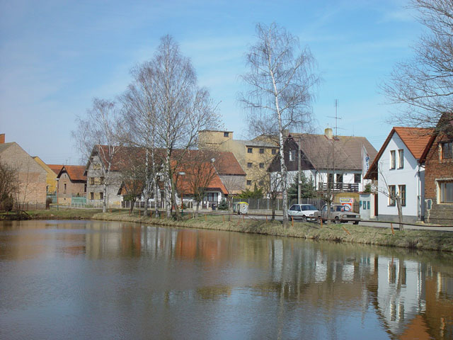 Rok 2000-pohled na lišanský rybník v centru obce, v současnosti pronajímaný Svazu rybářů