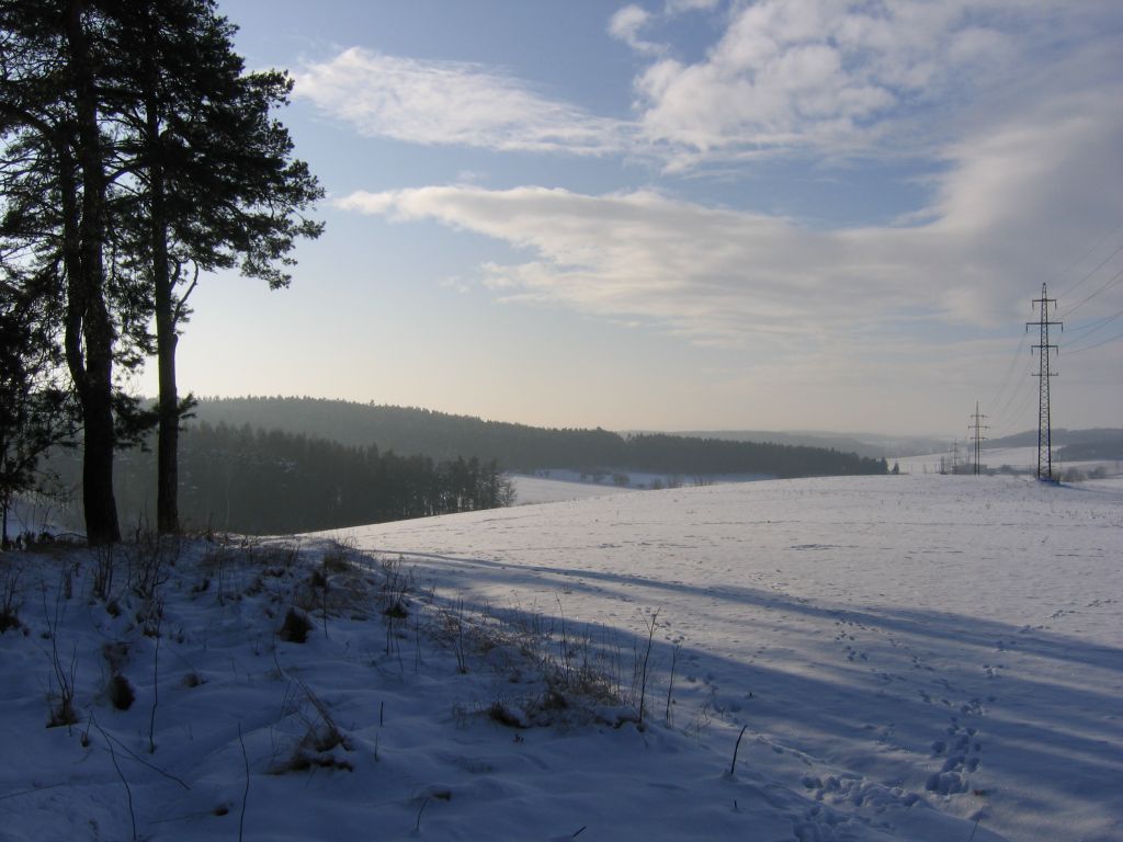 6.12.2016 - bílý kopec Loušín nad krajinou jako první pozdrav zimy