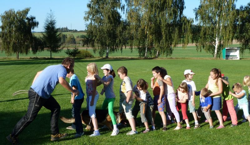 Děti v roli figurantů při ukázce výcviku psů, který byl součástí programu