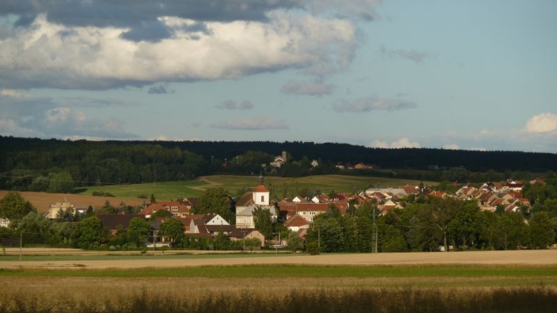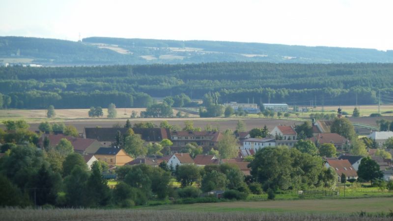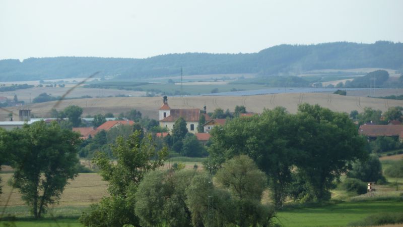 Pohled na Lišany od Hlavačova, srpen 2016