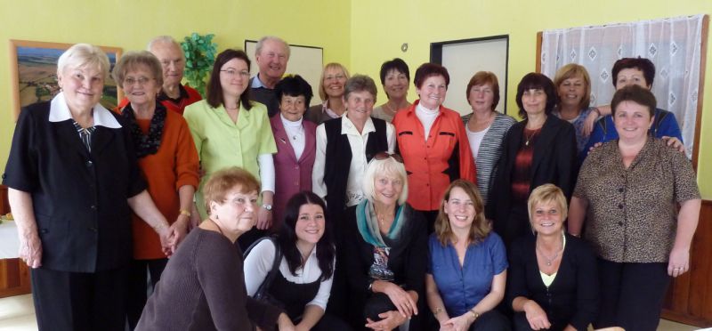 Společné foto hostů a vedení Obce ze symbolického otevření opravených chodníků