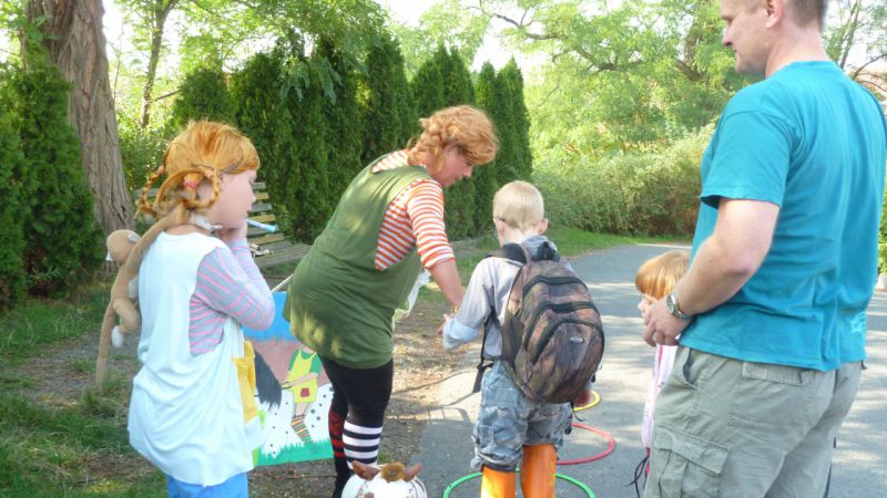 ..., protože tam si s dětmi hrála barevná strašidla a ....