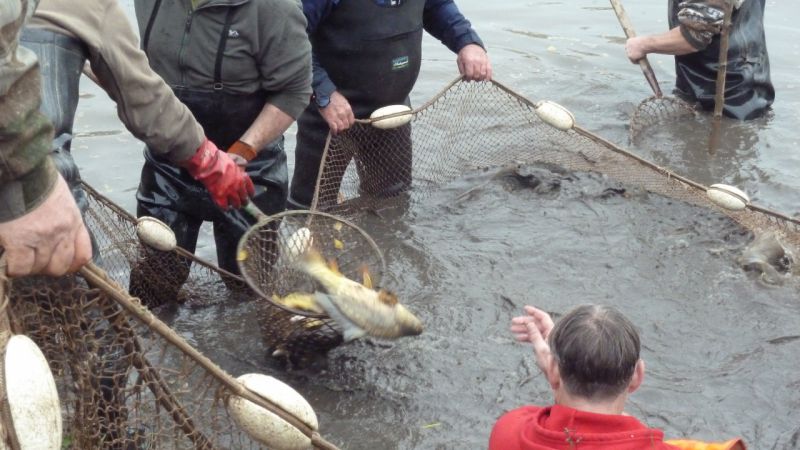 Výlov rybníka 10.10.2015, zatahování sítí