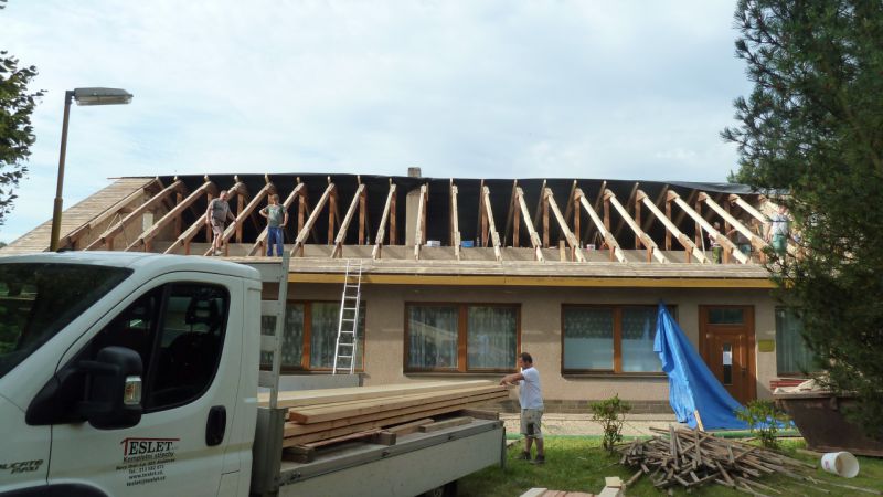 V červenci 2016 se začala oblékat mateřská školka v Lišanech do nové střechy ...